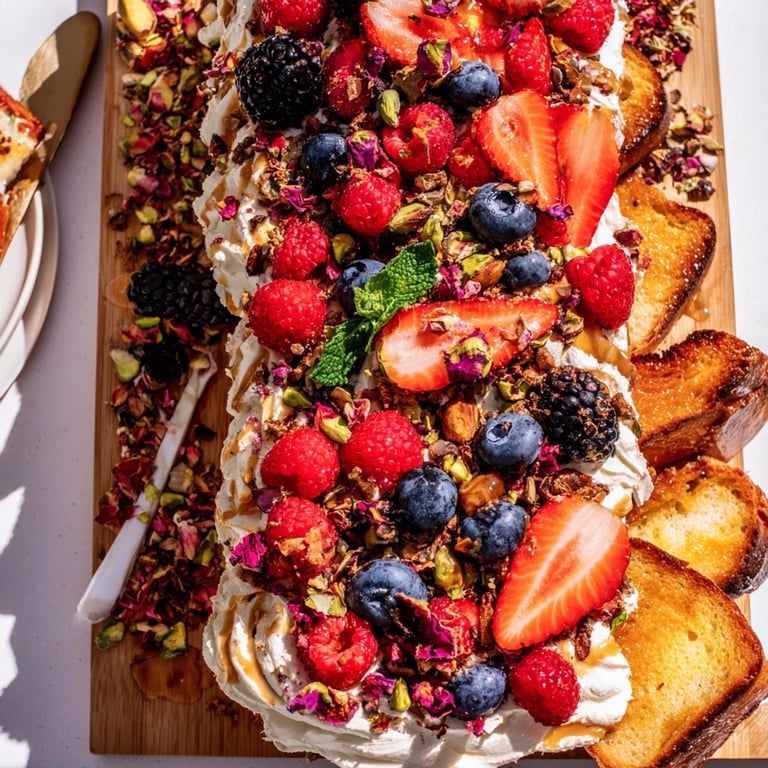 - Toppings: 150 g (1 cup) mixed fresh berries (strawberries blueberries raspberries blackberries), 2 tbsp chopped toasted pistachios or almonds, 1 tbsp dried edible rose petals (optional), 2 tbsp mini chocolate chips or shavings, 2 tbsp granola (optional), 1 tbsp fresh mint leaves torn