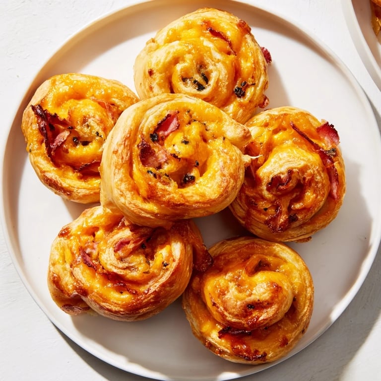 Save to Pinterest Buttery, golden pastry scrolls filled with sharp cheddar and savory salami—perfect for parties or snacking.