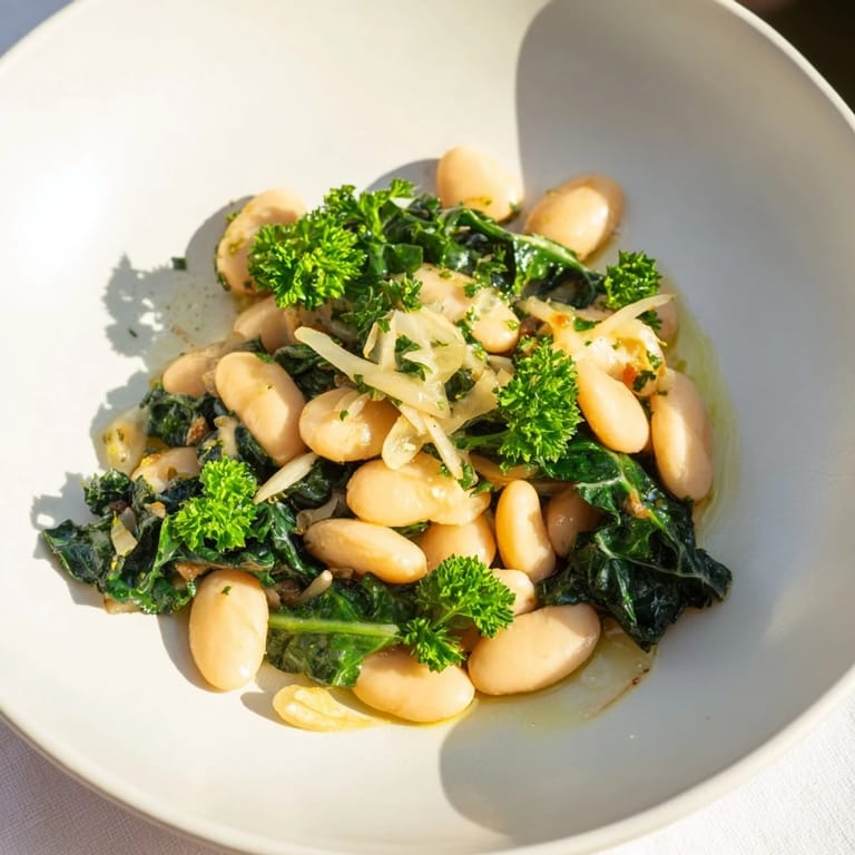 Save to Pinterest Creamy cannellini beans simmered with fragrant garlic and tossed with hearty winter greens for a nourishing rustic dish perfect for chilly days.