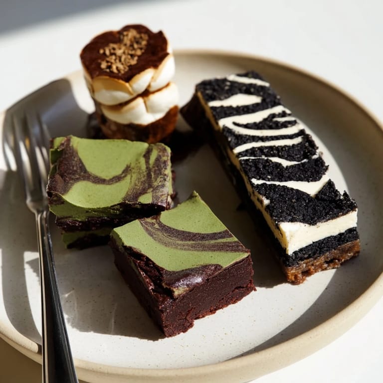 - Preheat oven to 175°C (350°F). Line a 20x20 cm (8 inch) pan with parchment paper. Melt butter and chocolate together in a heatproof bowl over simmering water. Whisk in sugar, then eggs one at a time and vanilla. Sift in flour, matcha powder and salt. Stir until just combined. Gently fold in miso paste until streaks remain for a marbled effect. Pour batter into pan and bake 20–25 minutes, until set but still fudgy. Cool completely before slicing.