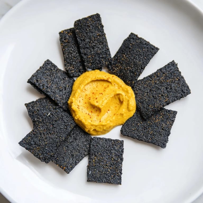 The whole point of this dish lives in the play between dark and light, bitter and sweet, crunchy and smooth. It's not just about making something beautiful; it's about understanding that the charcoal crackers make the dip look brighter, and the golden dip makes the black crackers feel more dramatic. Every element exists because of the other. When you arrange them on the board, you're not just plating food—you're creating a moment that surprises people the second they see it.