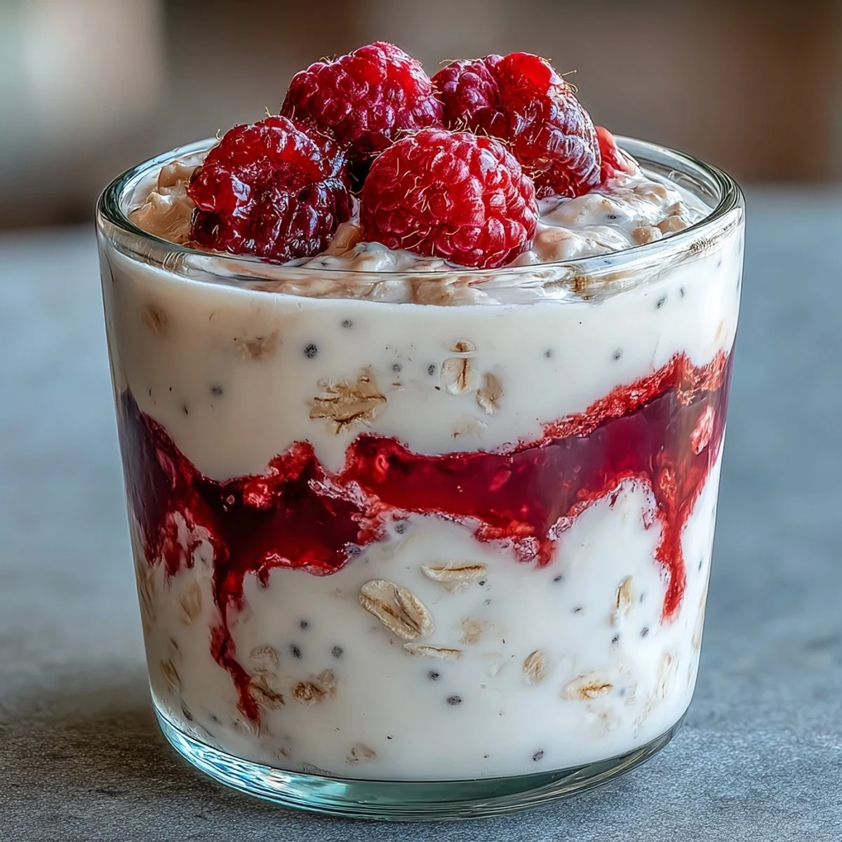 Save to Pinterest There's something magical about opening the fridge on a rushed Monday morning and finding breakfast already waiting for you, creamy and ready to eat. I discovered overnight oats by accident when I was too tired to cook anything proper, just grabbed whatever was in my pantry and threw it in a jar with some milk. By morning, I had transformed a bunch of separate ingredients into something that tasted like I'd actually planned ahead. The raspberries and chia seeds came later, after I realized plain oats needed a little more personality to keep me excited about breakfast.