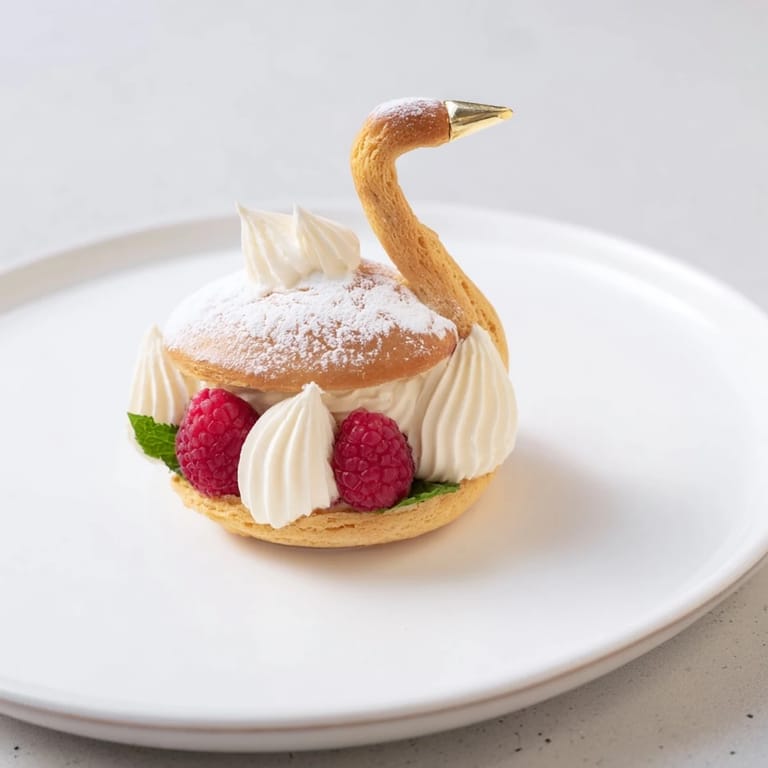 The careful piping and baking technique yield perfectly puffed, golden swan bodies with delicate necks that hold their shape beautifully. Assembling these pastries is both an art and a joy, transforming humble ingredients into a stunning feast for the eyes as well as the palate. Whether served at an elegant tea or a festive gathering, these swan pastries delight with their airy texture and elegant form.