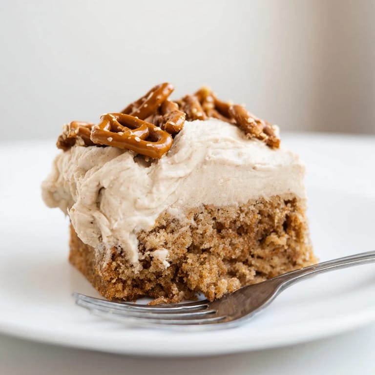 Save to Pinterest A moist spiced sheet cake brings together the nostalgic flavor of root beer with creamy cinnamon frosting and crunchy pretzels. This playful dessert is a twist on classic comfort sweets, making it perfect for groups and festive occasions.