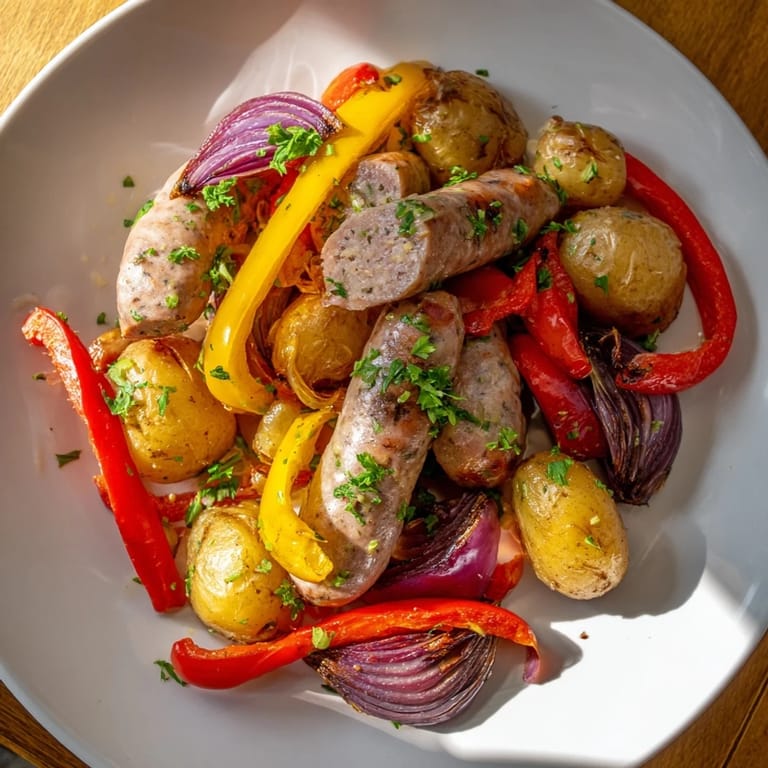 Save to Pinterest A hearty and colorful one-pan meal featuring roasted sausages, sweet bell peppers, onions, and golden potatoes—perfect for busy weeknights.