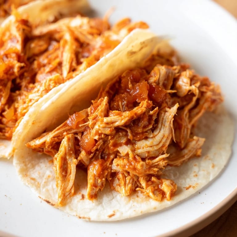 Save to Pinterest Tender, flavorful shredded chicken slow-cooked with spices, served in warm tortillas for a budget-friendly, crowd-pleasing meal.