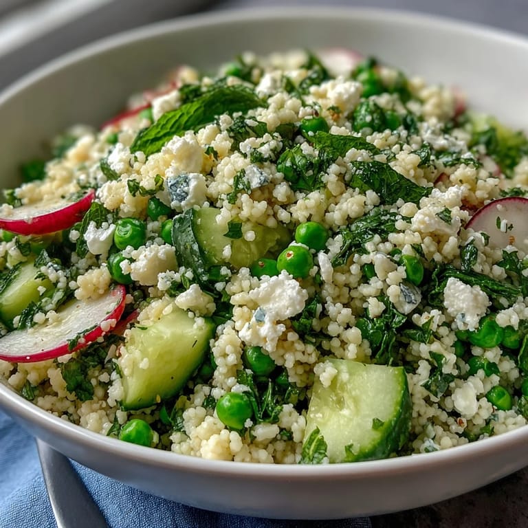 Save to Pinterest The scent of freshly chopped mint always reminds me of the first time I made this Spring Pea and Mint Couscous Salad for an impromptu garden lunch. I hadn't planned on making anything fancy, but the sight of peas at the market inspired me to try something new. With a cool breeze drifting through my kitchen window, I tossed couscous into simmering broth and watched it fluff perfectly. Sometimes the most vibrant dishes come together on a whim, and this one has been a go-to for bright spring days ever since. There's something about the crunch of radishes and the tangy whiff of lemon that signals the season.