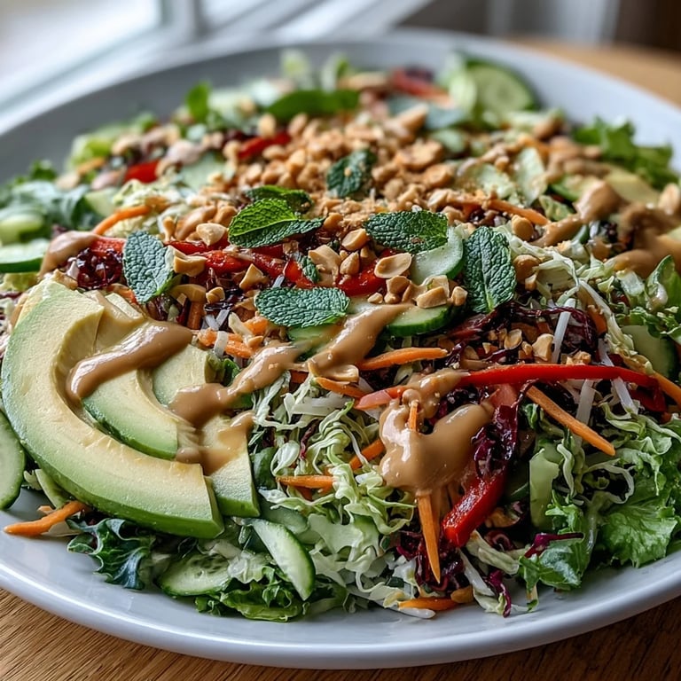 While the core of this salad is perfect as written, I've found that adding snap peas, radishes, or shredded daikon brings different textural notes depending on the season and what's in my crisper drawer. Sometimes I swap the peanut butter for almond or sunflower seed butter when I'm in the mood for something slightly different, and it works beautifully. The herbs are also flexible—if you only have access to some of them, lean into what you have and let those flavors shine instead of feeling like you're missing something.