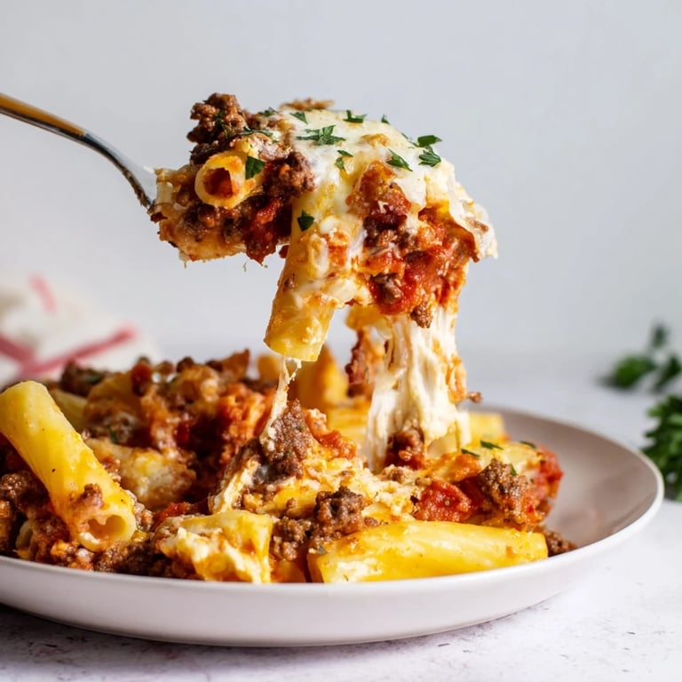 Save to Pinterest A comforting Italian-American pasta casserole featuring tender ziti, a rich meat sauce, and gooey melted cheeses—perfect for family dinners or gatherings.
