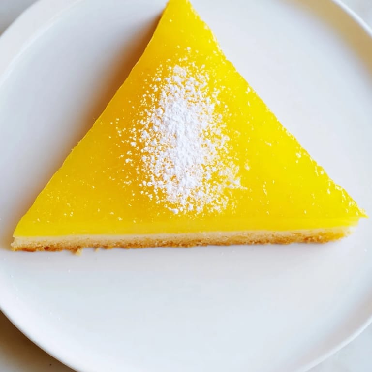 Save to Pinterest Bright, tangy lemon bars with a buttery shortbread crust, cut into elegant triangles for an easy, crowd-pleasing dessert.
