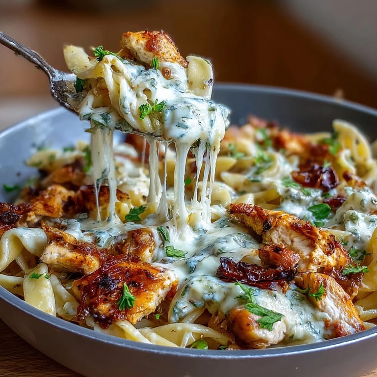 This dish combines tender chicken pieces with slowly caramelized onions to build deep, rich flavors reminiscent of French onion soup. Short pasta cooks directly in savory broth, absorbing all the taste while fresh thyme and garlic infuse the meal. Melted Gruyère, mozzarella, and a sprinkle of Parmesan finish the dish with creamy, cheesy notes. Perfect for a cozy dinner, everything cooks in a single pot to simplify preparation and cleanup.