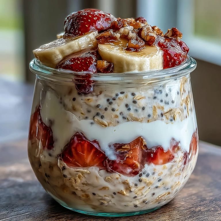 Save to Pinterest Overnight oats taught me that the best meals aren't always the ones that demand your attention; sometimes they're the ones you trust enough to leave alone. This jar of strawberries, banana, and oats waiting quietly in your fridge feels like a small act of kindness you're giving yourself.