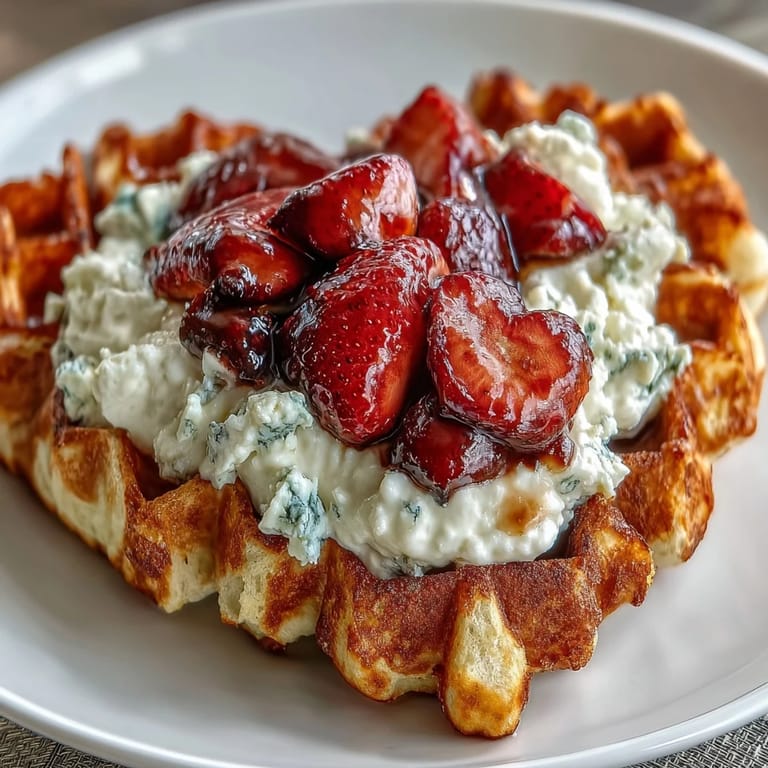 These waffles are best served immediately while they're still warm and the exterior maintains that crucial crispness. If you're making them for a group and they're sitting around getting soft, you can refresh them in a 350-degree oven for about 3 minutes, which crisps up the outside without drying out the inside. The cottage cheese whip actually tastes better if you make it just a few minutes before serving, so it has that cloud-like texture rather than separating and getting thin.