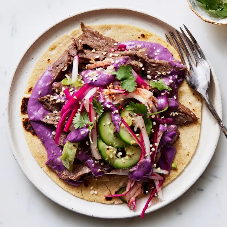 Save to Pinterest A vibrant, flavor-packed recipe blending inspirations from street food around the world—think Korean bulgogi tacos, Filipino ube crema, and zesty Mexican toppings. Perfect for a fun, customizable meal!